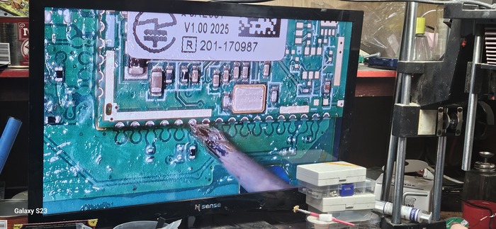 Сначала я проигнорировал 320 вольт на кондере C7112. И сразу перешёл к пункту 10 моего списка. Впаял отсутствующий варистор, заменил IC7201 и кондеры C7220, C7222, C7228, а также кондер C7227, потому как на нем должно быть 32 вольта с 3 ноги IC7201, но было всего лишь 12-15 вольт.