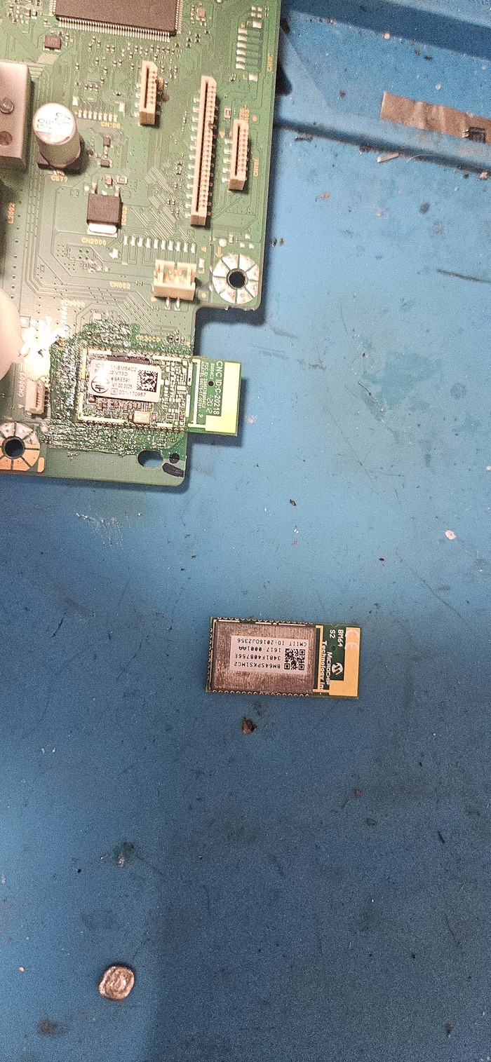 Ранее он был уже в ремонте. После этого проработал несколько лет. Судя по следам пайки, в прошлый раз мастер заменил шим-контроллер IC7201 и выпаял сгоревший варистор VA7001.