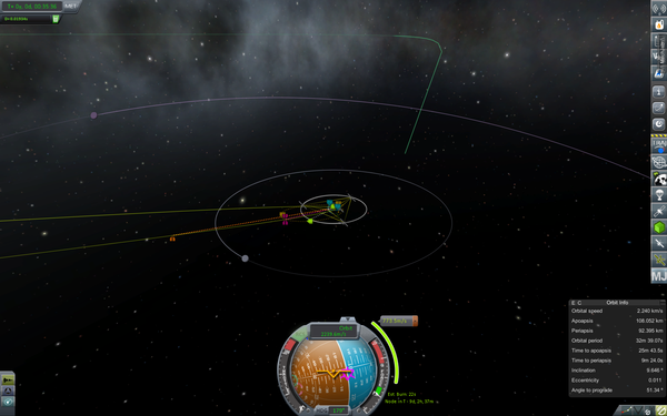 5. Используйте Mechjeb или что-то подобное, для расчета Δv. Первая ступень с полезной нагрузкой должна иметь от 3900 до 4000 м/с. этого вполне достаточно для выполнения своей задачи. Взлет до НОО расходует примерно 3400-3600м/с и у вас должно оставаться около 500м/с для посадки.