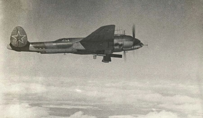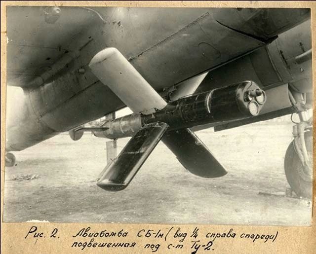 Советская телеуправляемая бомба СБ-1м на внешней подвеске бомбардировщика Ту-2, 1944 год.