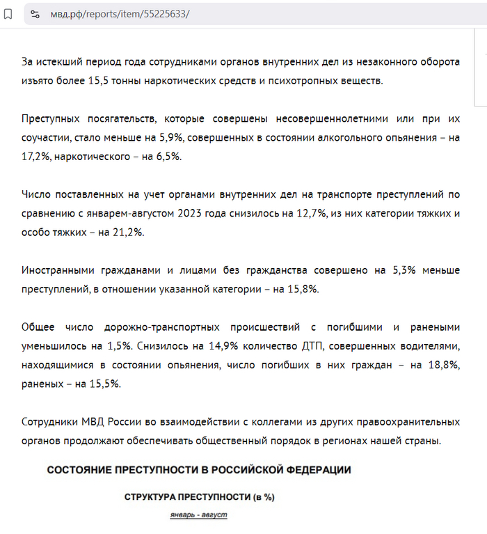 На дорогах и трассах вне населенных пунктов совершено 596 разбойных нападений (+3,5%), 716 грабежей (+13,5%), выявлено 108 фактов незаконного приобретения, передачи, сбыта, хранения, перевозки или ношения оружия, боеприпасов, взрывчатых веществ и взрывных устройств (-62,5%).