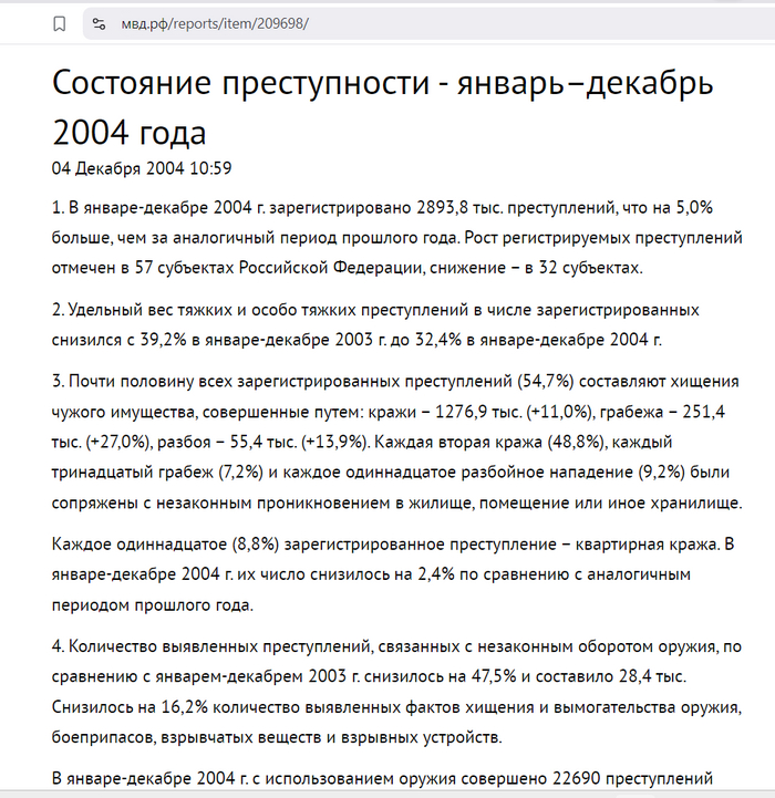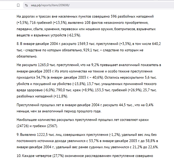 Преступлений прошлых лет в январе-декабре 2004 г. раскрыто 44,5 тыс., что на 0,4% меньше, чем за аналогичный период прошлого года.