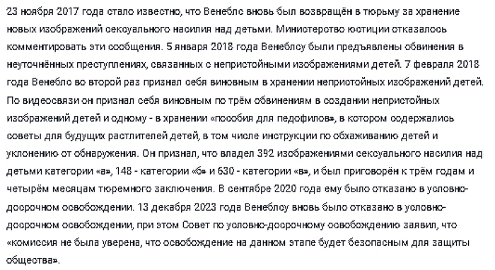 В январе 2020 года 53-летняя женщина из Амманфорда в Южном Уэльсе была приговорена к восьми месяцам тюремного заключения с отсрочкой исполнения приговора на 15 месяцев: в ноябре 2017 года она опубликовала в Facebook предполагаемую фотографию Венеблса с рекомендацией «поделиться этим как можно больше». Лорд-судья Найджел Дэвис заявил, что преступление было «близко к черте» для немедленного тюремного заключения, но отсрочил приговор после того, как женщина сразу признала свою вину и раскаялась.