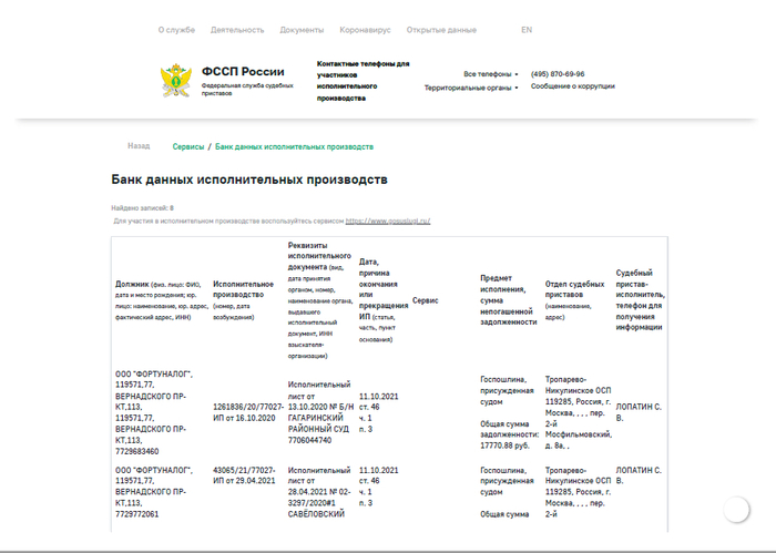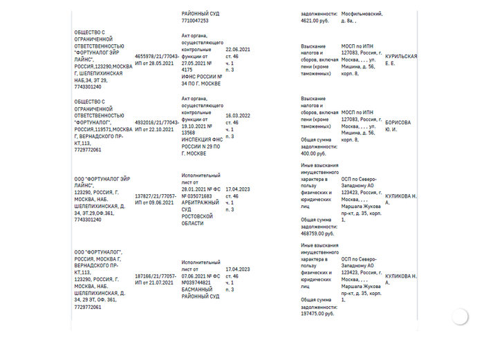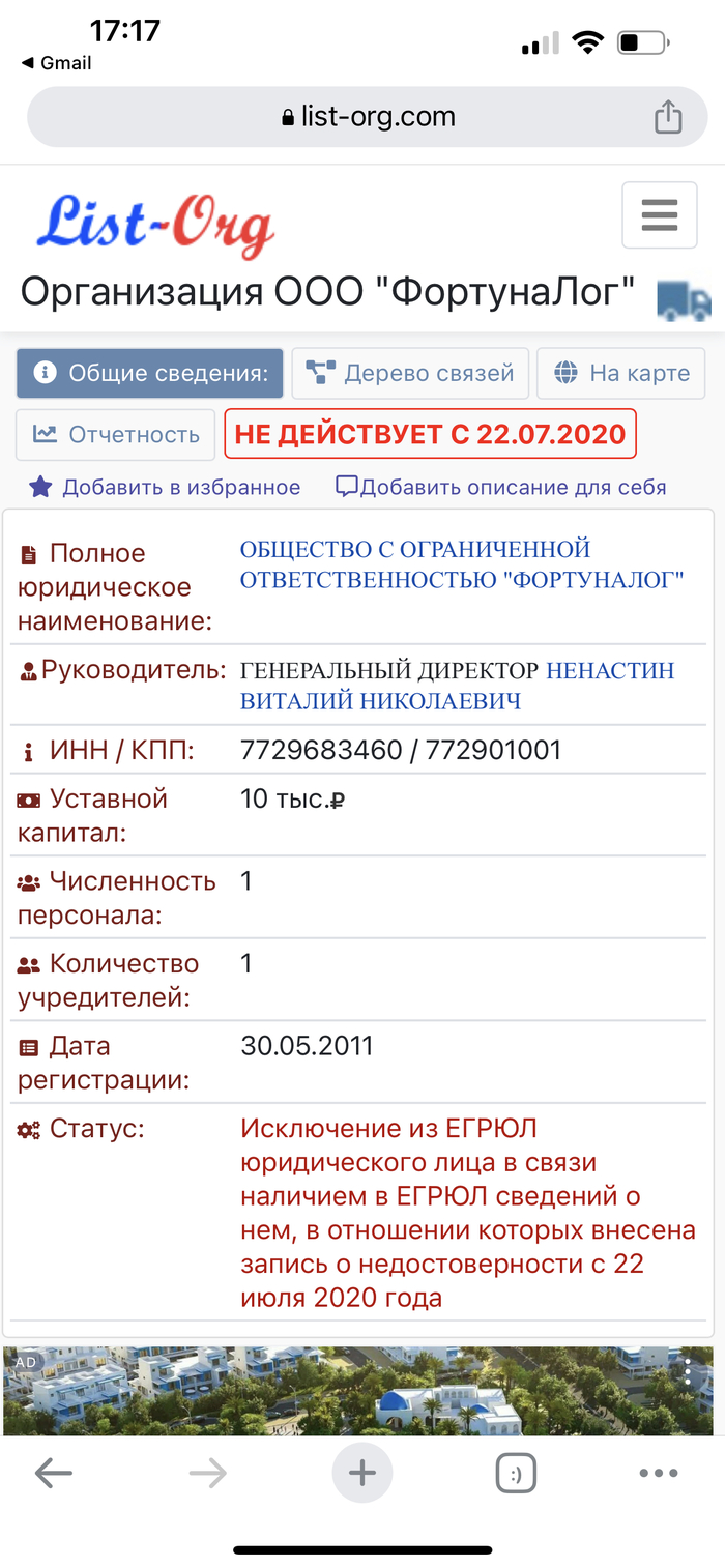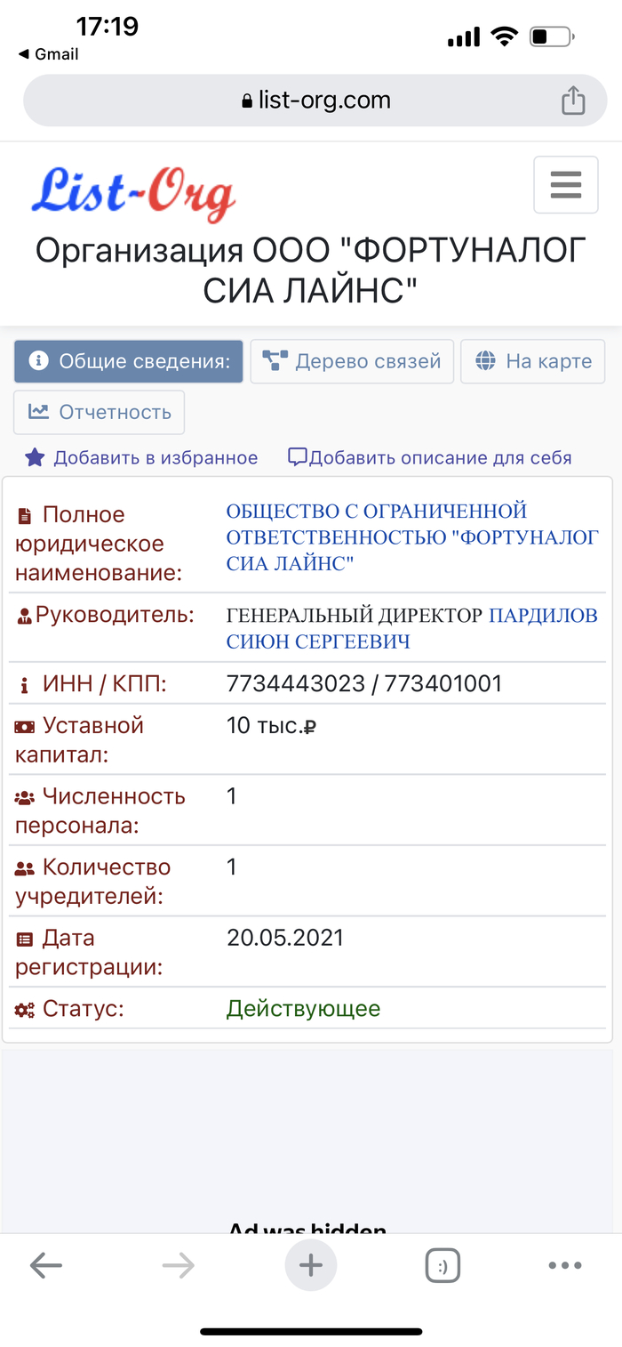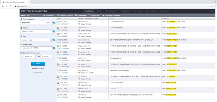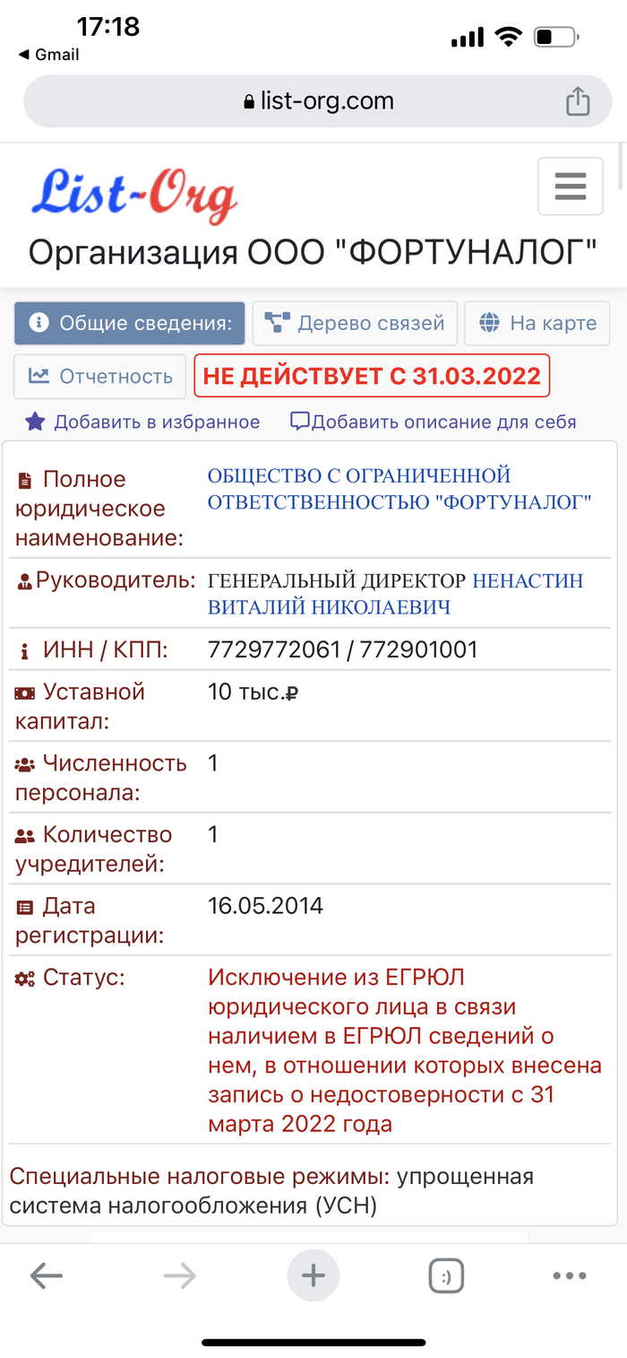«В Москве машину разгрузили, отпустили. Водитель два дня спал в кабине, пока ситуация разруливалась. Единственное, что тогда не было сделано, расторгая договор с «ООО Фортуналог», я не написал, что требую возврата денег. Это могло бы добавить проценты к решению по суду. А до суда в Басманном районе Москвы дело дошло. Позже я обнаружил, что у «ООО Фортуналог» есть старший брат контора близнец с таким же названием, и с тем же учредителем руководителем Ненастиным Виталием Николаевичем. И таких контор близнецов, как минимум, насчитывается больше пятисот, из которых какие-то ещё числятся как действующие, а какие-то налоговики закрыли.