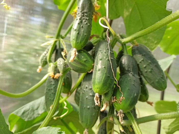 Огурцами как обычно завалило. А все потому, что надо вовремя обрезать и не высаживать несколько кустов с идеей "а вдруг не приживется?" Приживаются обычно все. А потом их жаль выбрасывать. Приходится раздавать огурцы всем вокруг😅 Но, кажется, всем это нравится🤭 Не кабачки ведь!