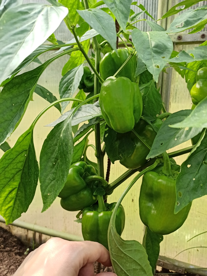 Рассада перцев превратилась в перцы. Жду, когда начнут краснеть, но на салатик уже крошу.