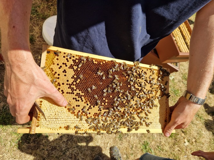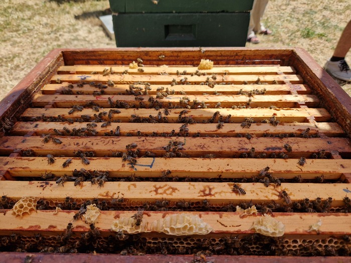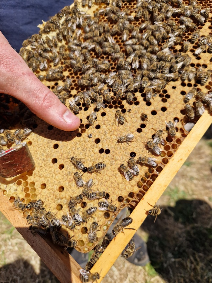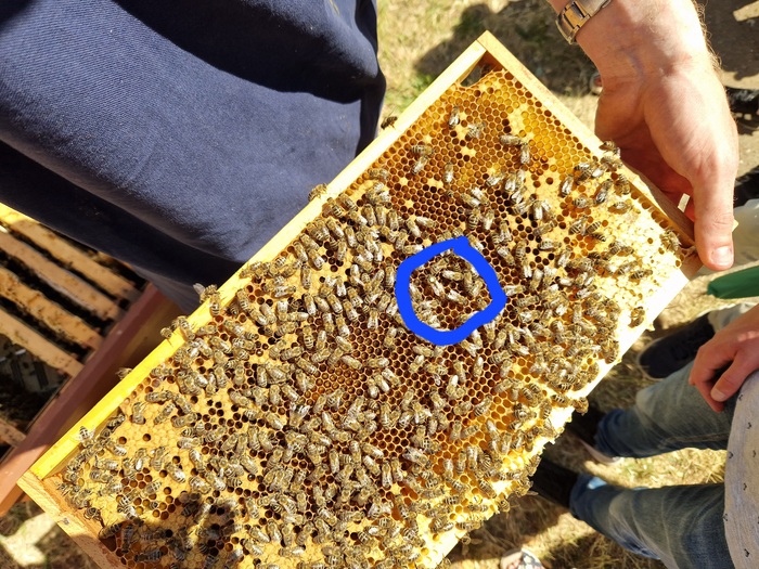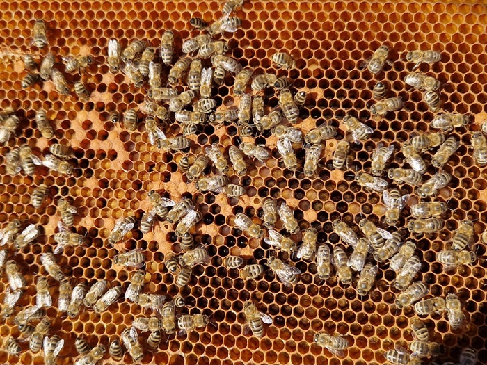 - следить за тем, сколько и какого типа сот есть - мед, перга, соты с расплодом (яйца, личинки, куколки) рабочих пчел и трутней, соты с будущими царицами. И можно удалить те, которые не нужны, например трутней.