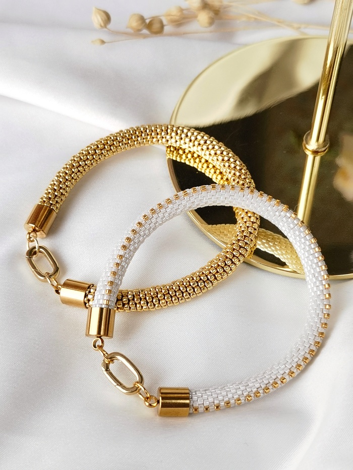 Внутри браслета резиночки корейского производства, надёжные и удобные