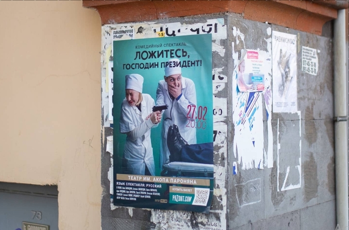 Гайлит - русский, режиссер абсурдистской комедии „Ложитесь, господин президент!“ Очень опасная театральная постановка. В России такой спектакль больше немыслим. Даже для документального театра, критикующего правительство Teatr.doc в Москве эта тема была слишком острой. В Армении более спокойно. Гайлит переехал сюда со своей женой, драматургом Оксаной Некритовой, как и многие россияне с начала конфликта на Украине (прим. тут ругают сво). Более ста тысяч. И свой юмор они принесли с собой. на Кавказ. „Ложитесь, господин президент!“ стал хитом в Армении. Три спектакля в Ереване, каждый на 150 человек. Было многолюдно, они переехали в большой театр на 650 зрителей. Снова многолюдно. Слишком политически, слишком зло? Оксана Некритова говорит: „Как раз наоборот: большинство зрителей - русские. Они хотят чего-нибудь острого. Что-то, что лечит их раны“. Президент, находящийся на грани жизни и смерти, для них, очевидно, является одним из них.