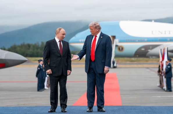 В итоге сделки не было, но была фотосессия: драматический, хорошо срежиссированный кадр, на котором президент Трамп не просто приветствует президента России Владимира Путина на Аляске в пятницу, но и расстилает красную ковровую дорожку — ставший универсальным символ славы, пышности и помпезности.