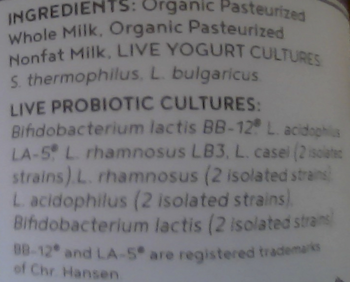 На этикетке отдельными пунктами выделены живые йогуртовые культуры (LIVE YOGURT CULTURES) и живые культуры пробиотиков (LIVE PROBIOTIC CULTURES), которые видимо добавлены в уже готовый йогурт.