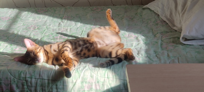 Это моя бенгальская красавица, зовут Лея. Очень сильно привязана ко мне, готова даже со мной в ванну зайти и там сидеть пока не закончу мыться. Вот такая вот любовь. Сейчас ей 4 года. Очень болтливая, как положено этой породе кошек. Но голос очень мягкий и не звонкий, довольно таки приятный.