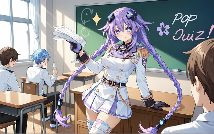 8 Olainferno 13 дней назад Hyperdimension Neptunia Внезапная проверочная от Богини Решил развить школьную тему и теперь изобразил Purple Heart в роли зам. учителя ^_^ [моё] Аниме Anime Art Арты нейросетей Арт Purple Heart Hyperdimension Neptunia Ещё 0