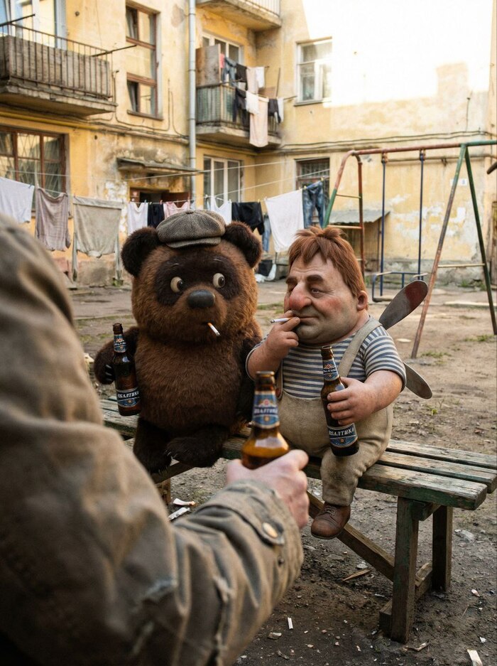 Фотореалистичный кадр, не меняя внешности женщины с исходного фото. Максимальная детализация кожи с видимой естественной текстурой, поры, микрорельеф, натуральный тон — без бьюти-сглаживания и без soft focus. Высокий микроконтраст, оптическая резкость, реалистичная цветопередача, HDR, cinematic photo, RAW photo look. Перед нами на заснеженной поверхности рядом с деревянным срубом сидит молодая женщина в ярко-красном традиционном русском платье с изящными золотыми узорами, на плечах декоративная цветастая шаль с преобладанием красного оттенка. Поза слегка повернута вправо, смотрит прямо в камеру. Она держит блин у губ, как будто собирается сделать укус, на коленях тарелка с блинами — видна текстура теста и поджаренной поверхности. Свет — реалистичный, объемный: теплый огонь и свет из окна позади дают контровую подсветку и мягкий rim light по контуру, спереди — слабый заполняющий холодный отраженный свет от снега. Четкая светотеневая модель, естественные тени, без пересветов и без glow-эффекта. Рядом сидит большой бурый медведь в традиционной меховой ушанке, смотрит в камеру. Шерсть гипердетализированная, видны отдельные волоски, естественная глубина и плотность меха. Перед ним старая гармонь, частично в снегу — видны потертости, металл, текстура дерева и кожи. На заднем плане — зимний лес и люди в традиционных нарядах вокруг большого костра с горящей праздничной куклой. Фон немного в расфокусе, но читаемый — реалистичное боке, без размытой каши. Оптика и параметры съемки: full-frame camera, 85mm lens, f/2.8, высокая резкость по главному объекту, глубокая детализация переднего плана, натуральное боке. Репортажная студийно-киношная съемка, без глянца и без пластиковой кожи. Цвет — глубокие красные, коричневые и золотые оттенки, естественный баланс белого, без пересатурации. Макияж: smoky eyes с длинными стрелками, густые ресницы, четкие брови, матовая помада, естественный румянец. Волосы объемные, хорошо проработанные пряди. Негативные ограничения (очень важно добавить): no blur, no soft focus, no beauty filter, no skin smoothing, no airbrush, no plastic skin, no low detail, no watercolor effect, no painterly style