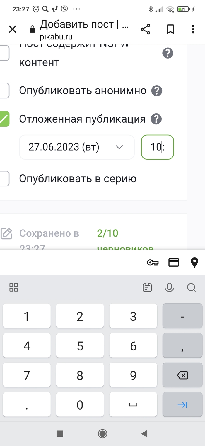 И ещё, не могу выставить время отложенной публикации, минуты не вводятся:(