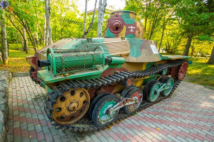 Но самым интересным экспонатом здесь является этот японский танк Тип-95 "Ха-Го", привезённый с Курильских островов.