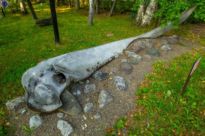 А ещё здесь почему-то лежит на газоне часть челюсти кита.
