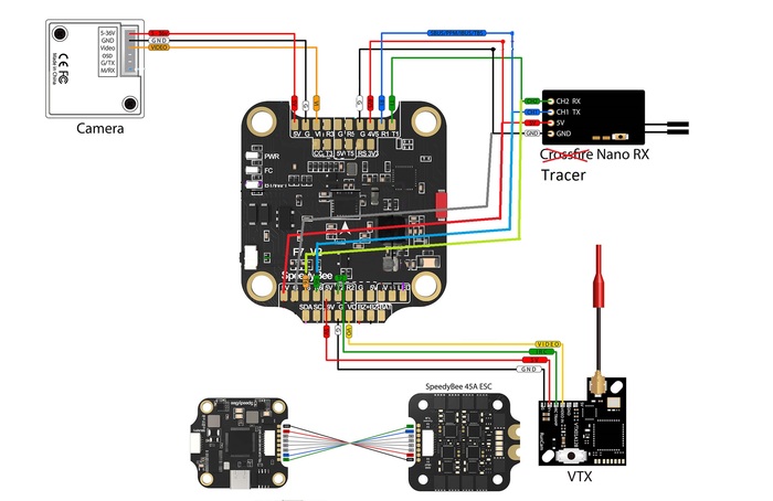 Собственно распиновка Tracer"а от Crossfire"а ничем не отличаются. Вообще производитель рекомендует подключать как нарисовано в оригинале. В оригинале он запитывается от пина 4V5 и идёт на первый UART. Отличия пинов 5V от 4V5 тем, что 4V5 питается от usb, а 5V только от ВЕС, тоесть только при подключении батарейки. Ситуации когда может пригодится включённый приёмник от usb, и чтоб я не смог подключить батарейку, я придумать не смог. А вот лишние 5-7см макоронин тянущиеся от приёника через весь коптер к переду полётника, это заметил сразу. И как говорил ранее, у нас тут борьба за вес и каждый сантиметр провода на счету) Так что кидаю на ближайший UART, который оказался шестым и туда же 5 вольт с землёй. Позже в настройках не забывает Serial RX указать куда надо, так как дефолтно он первый.