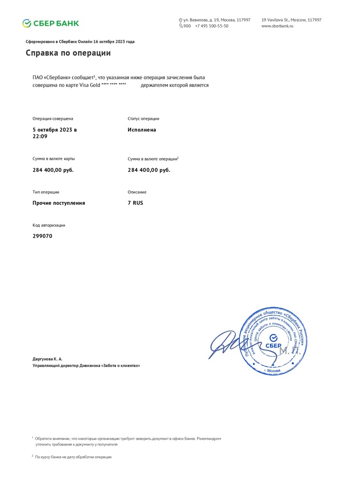 Приходит ответ, вот вам договор на много листов №08-01-02/07609 и к нему прикреплен договор оферты с периодом 90 дней. Там говорят, что только сегодня и только для нас - вернем деньги, но предоставьте справку из налоговой, что вы не получали по данному продукту денюжку. Отдельный квест в налоговой о получении \ не получении справки социального налогового вычета, тут описывать не буду, но справку добыли практически с боем. Все документы прикрепили, документы подписали все в ручки им отдали иииииии (барабанная дробь аля интрига) - приходит сообщение, что ей перевели деньги. Я так за себя не радовался как за коллегу. Прям орать хотелось=) Поделился с женой, она сказала, что я молодец, мне приятно, человеку приятно, все радуются и танцуют. Я попросил справку о зачислении, ведь на Пикабу без пруфов делать нечего.