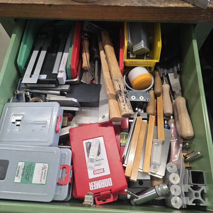 Заболел коллега. Возрастом под 60 лет. Давно уже нет на работе, больше полугода. У него свой рабочий стол-верстак. В нём он хранит инструменты. Закрывает ящики на замок, чтобы не разбазарили его инструмент. У него точно есть всё что надо для работы. В общем нам понадобился инструмент чтоб снимать фаски в отверстиях не круглой формы, а они в запретом ящике. Когда, и вообще, вернётся этот коллега - неизвестно. Шеф говорит чтоб вскрыли ящик и достали всё что нужно для работы.