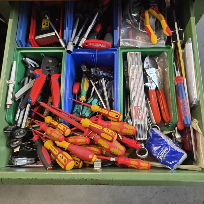 На фото содержимое. Одних отвёрток плоских однотипных штук по 5.