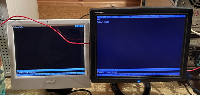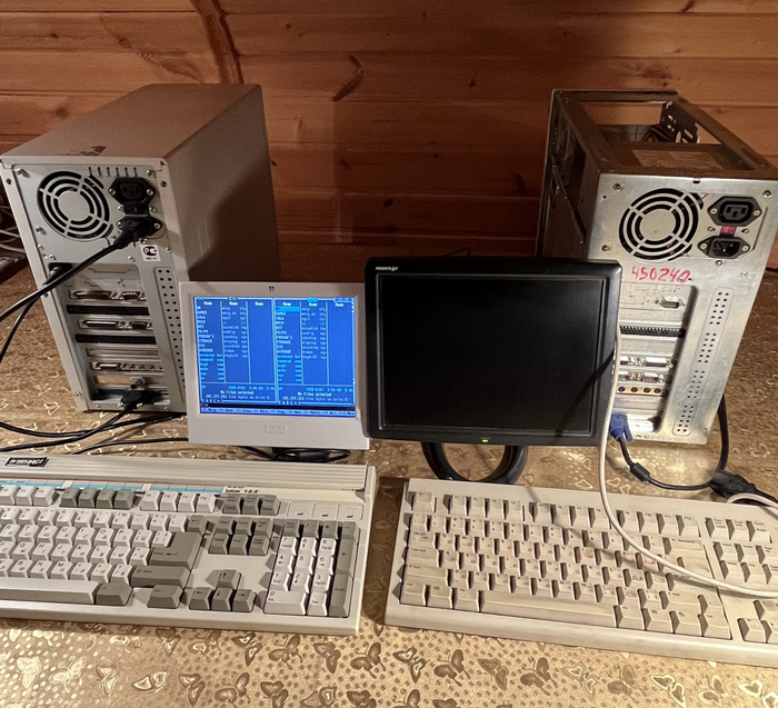 Для эксперимента выбраны два одинаковых ретрокомпьютера с процессорами 386. Эти компьютеры работают на чистом DOS и оснащены аппаратным COM-портом с разъёмом DB9. Можно использовать и другое оборудование — например, менее мощное (вплоть до XT-машины) или более современное.