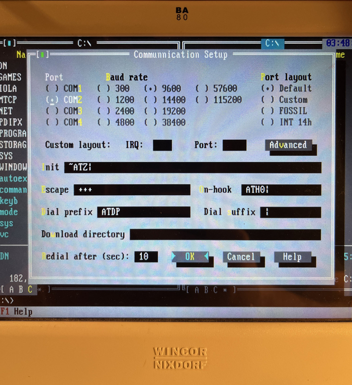 Для передачи данных в виде текста используется терминальная программа, которая интегрирована в DOS Navigator (DN) — развитую файловую оболочку под MS-DOS.