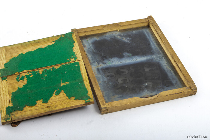 Это фотопластинка с негативом для тиражирования снимка посредством контактной фотопечати. В рамку зажималась фотобумага и засвечивалась через негатив.