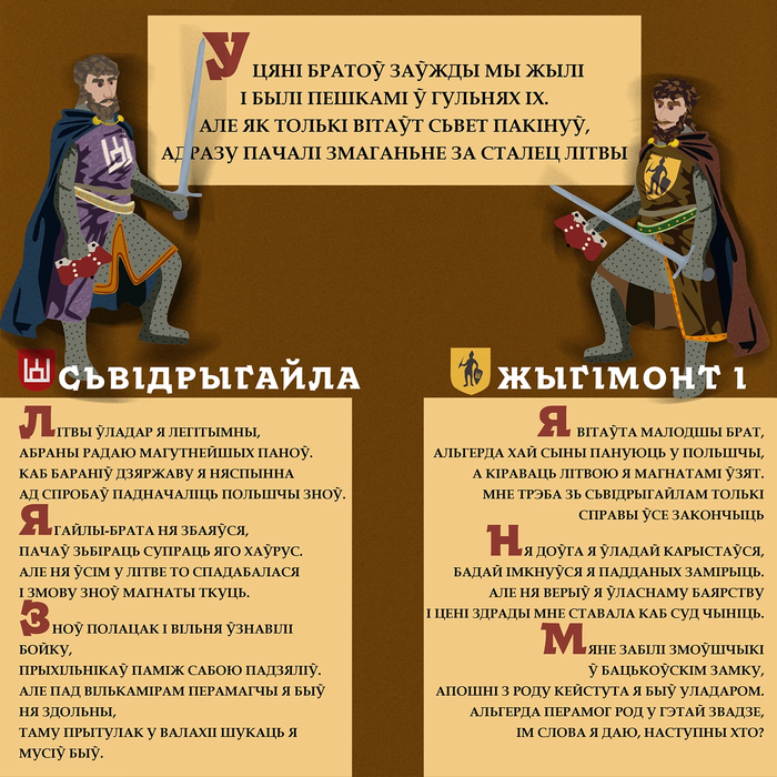 Адвага або мёд п'е, або кайданы трэ. — Калі адважны чын удасца, дык чалавек будзе раскашавацца ў шчасьці, калі-ж ня ўдасца, дык загіне ў кайданох.
