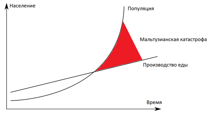 Кстати, все эти катаклизмы, неизменно происходящие после благоприятных климатических условий, как то Юстинианова чума через ~столетье, после распада римской империи, или великая чума ~через столетие после окончания Средневекового тёплого периода. Все это в последствии назовут Мальтузианским кризисом по имени британского священника и ученого, разработавшего эту теорию. Ее суть заключается в том, что во время благоприятных периодов население начинает расти темпами, значительно превышающими рост прогресса в производстве еды (по крайней мере так было на протяжении почти всей истории человечества до недавнего времени) это приводит к тому, что еды перестает хватать. Это пагубно сказывается и на здоровье людей, и на ценности человеческой жизни: и обычно это все заканчивается или войнами, или эпидемиями. Зато вот выход из такого кризиса как раз иногда и знаменует некоторый скачек технологий.