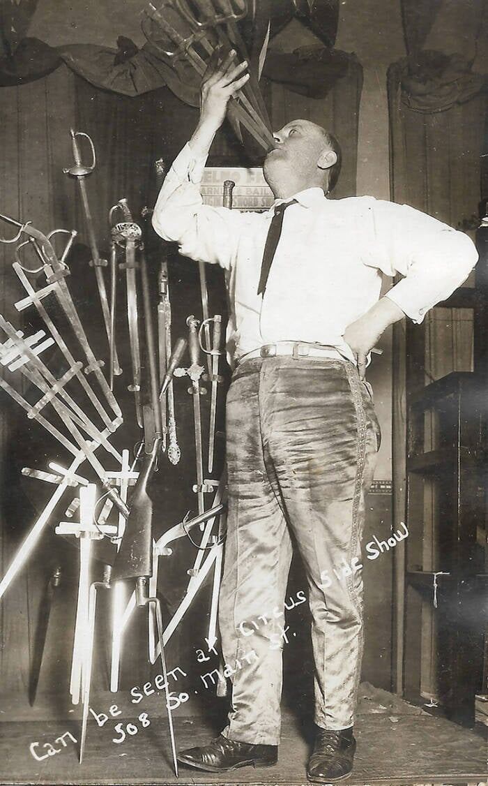 Одним из самых известных глотателей шпаг того времени был Фред Маклон, более известный как шевалье Клико. В дополнение к тому, что он, как сообщается, проглатывал до 14 шпаг одновременно, он также поразил публику, частично проглотив штык-шпагу, отягощенную двумя 18-фунтовыми гантелями. Чтобы сделать все немного опаснее, он позволял оставшейся части лезвия попасть ему в горло отдачей выстреленной винтовки.