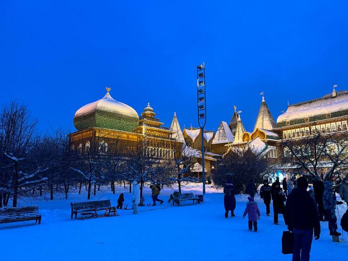 И спустя огромное количество времени, подъёмов, спусков, мы дошли до Дворца царя Алексея Михайловича, где уже во всю проходят рождественские гуляния: