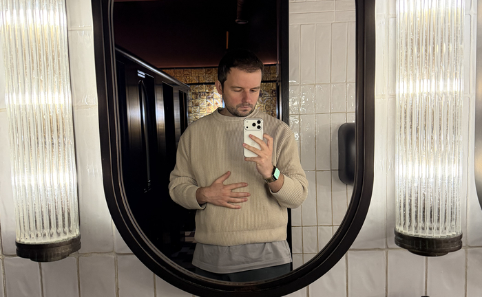 Только если очень сильно посветить на голову или если волосы грязноватые. Волосы такие же как везде на голове, начинают чуть виться, но пока немного жестче из-за ежедневного нанесения миноксидила.