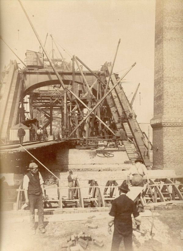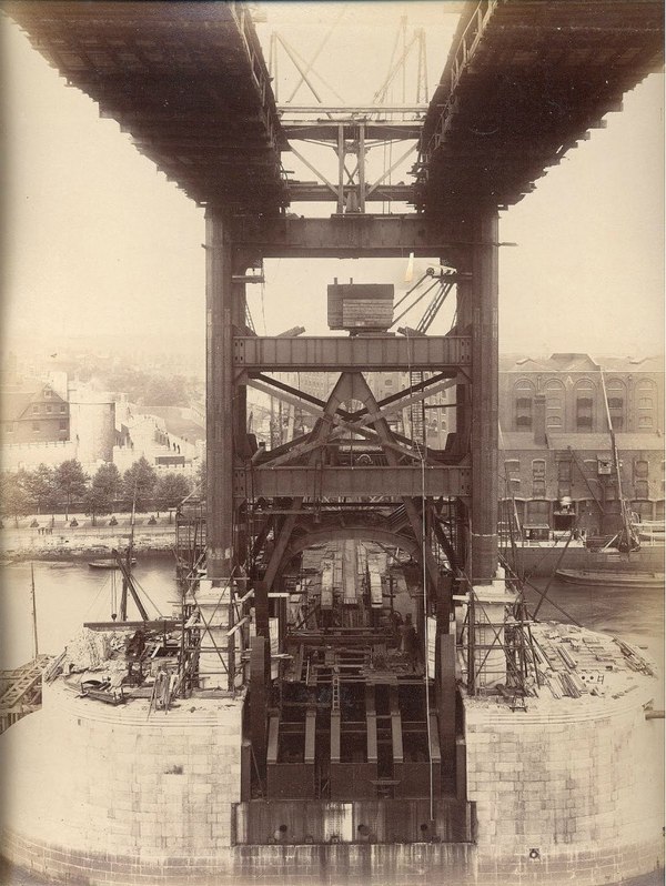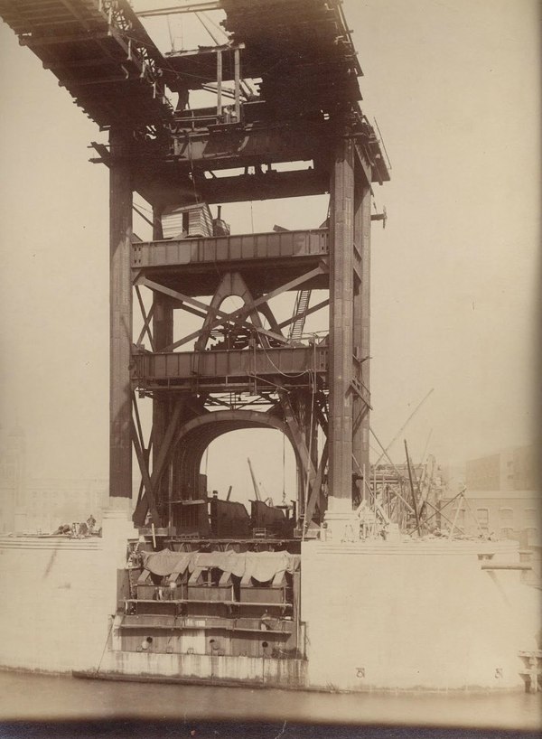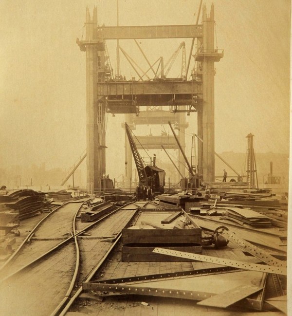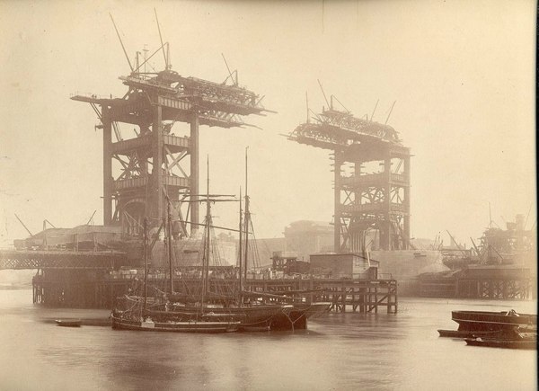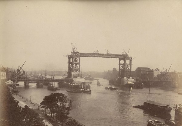 Строительство велось восемь лет и закончилось в 1894 году. Длина моста 255 метра, высота двух башен — 65 метров. Между башнями располагался разводная часть моста (61 метр), которая могла расходится в стороны за 1 минуту.