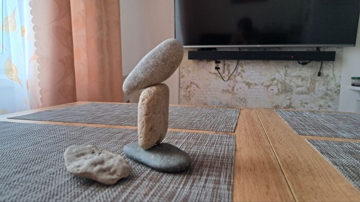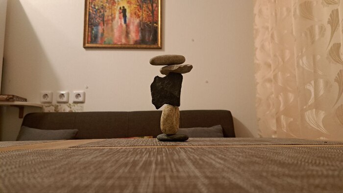 Обратите внимание, пирамидка собирается двумя руками сразу. По- отдельности камни друг на друга не собираются, разве что вертикальная укладка. Многие не верят, пишут хрень откровенную(когда ни сказать ни спросить нечего) про клей, особенно меня "знатоки" физики умиляют со своими умозаключениями что это невозможно)). Всё возможно, знайте! Пробуйте, повторяйте и у вас всё получится. Меня никто не учил, я смотрел на работы других и повторял, научился и вас научу, кто захочет! Всем добра!
