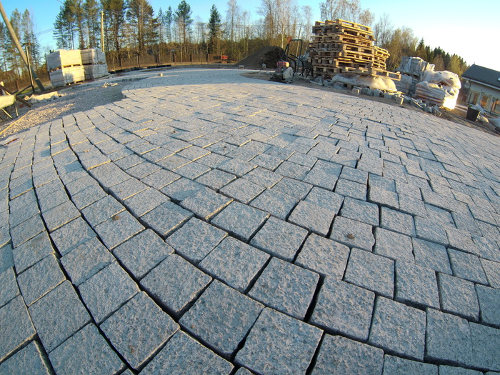 Гранитная брусчатка очень интересный материал, из неё можно создавать различные узоры.