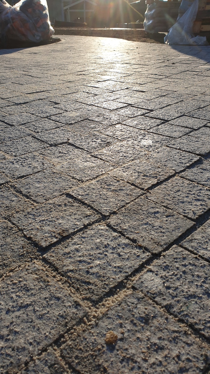 Верхний слой термообработан, что бы не скользил. После укладки трамбуем для более ровной поверхности.
