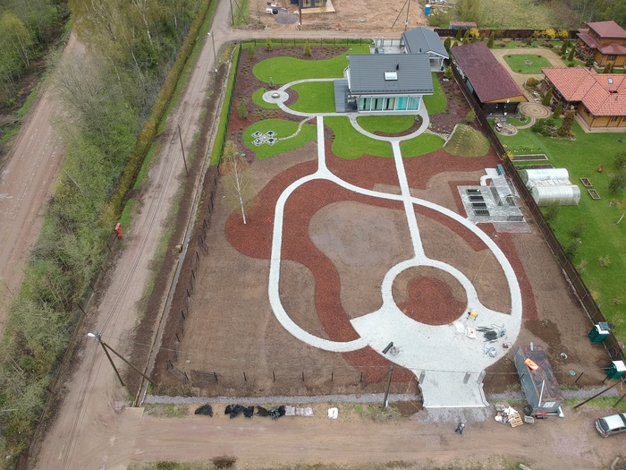 И результат. Газон посевной, посему надо подождать до зелёного результата.