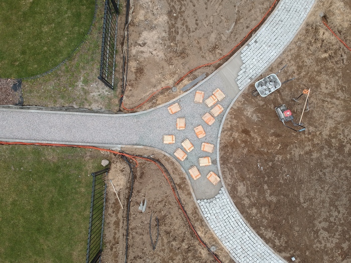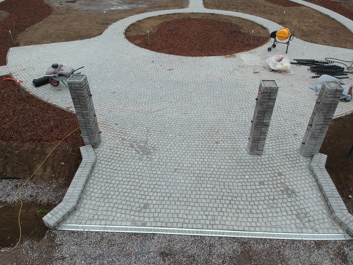 Большой объект с гранитной брусчаткой. Много тропиночной части для прогулок.