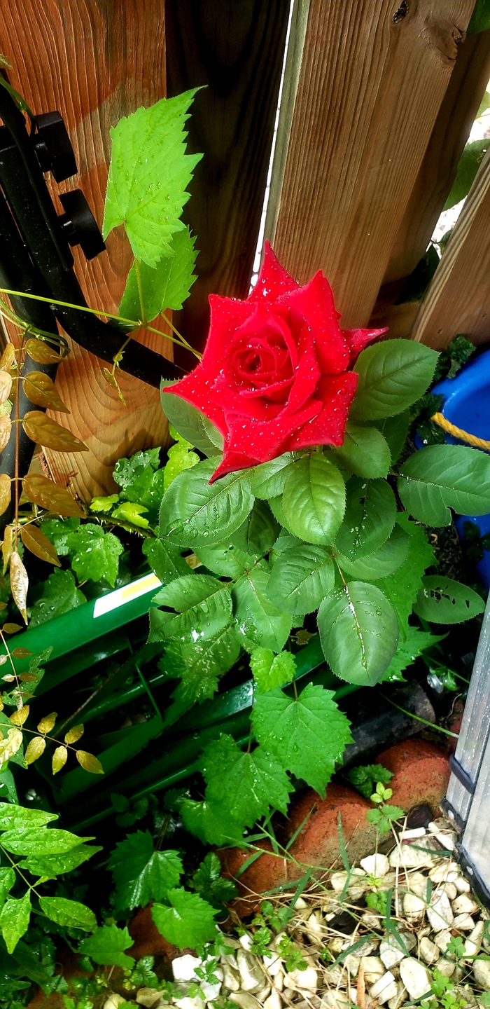 На заднем дворе от бывших жильцов досталась розочка, чааааахлая чахлая. Её всё время кто-то грыз, цветки мелкие, листья погрызаны.