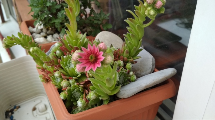 И больше всех порадовал цветок со славным названием - молодило. Мало того, что он превосходно себя чувствовал, он еще и зацвел!