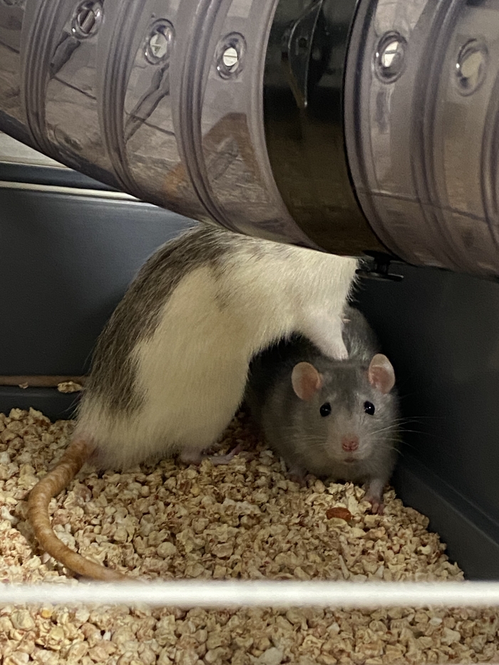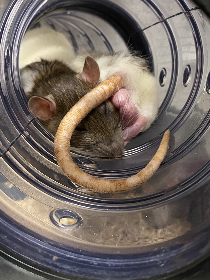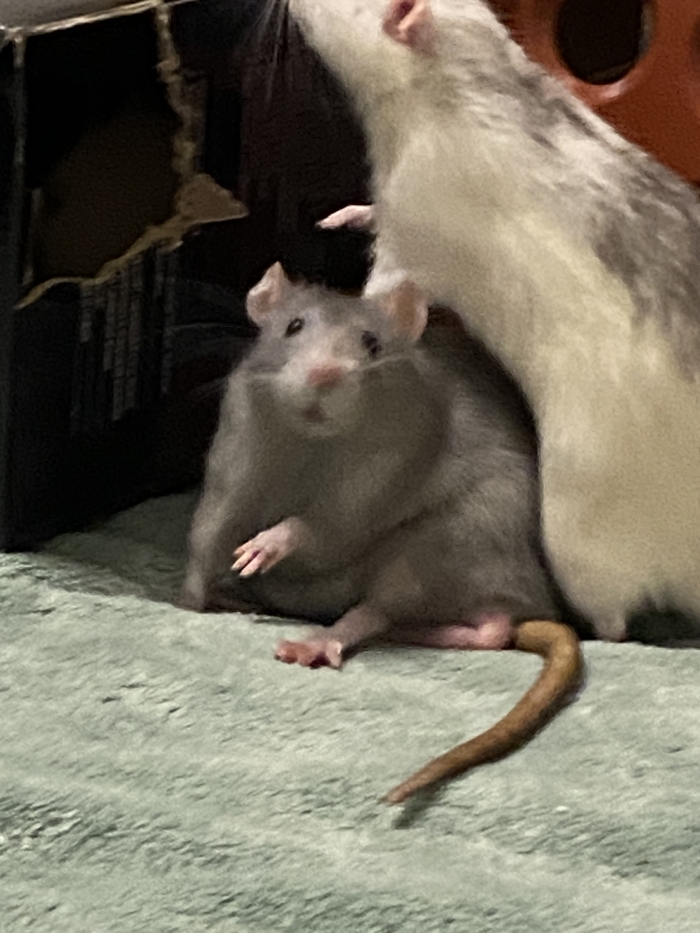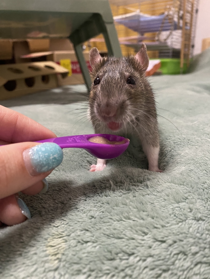 6 лет прошло с момента, как я завела свою первую крысу. Все по классике - один чихающий крысенок из зоомагазина, микроклетка и корм из овса с овсом. Потом были крысиные группы, вторая, третья, затем и пятая крыса, огромная птичья клетка, бесконечные переезды с крысами из общаги в разные квартиры и обратно. В общем, я была маленькая и глупая. После того, как две крысы умерли у меня на руках, потому что помощь им я оказать в деревне не смогла, остальных я увезла за 1000 км на поезде в добрые руки, у которых крысы благополучно свой срок и дожили. Сложное было решение, но правильное. А сейчас я уже третий год живу в СПб, и в доступности замечательные врачи, КТ, анализы, УЗИ и многое другое. Так что я честно потерпела два года, и в феврале этого года пошла в фонд спасения за какими-нибудь крысами