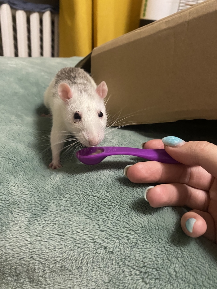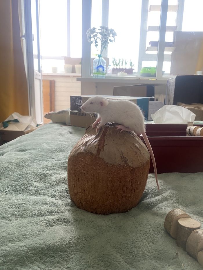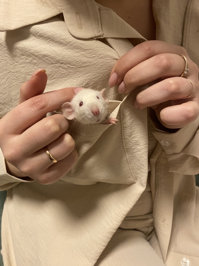 Чуть позже в одном из питерских питомников родился крысенок с микрофтальмом (маленькие недоразвитые глазки), его из-за этого отдавали бесплатно. Я увидела и влюбилась… И в марте мы забрали нашего Веню домой. Теперь у меня крыса с документами, родословной и семейным древом до n-ного колена