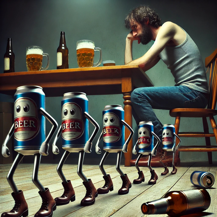 Наблюдая, как рядовые пивные банки занимаются строевой подготовкой на столе под громкое шипение банок-сержантов, горе-изобретатель решил, что это белая горячка и поклялся бросить пить.