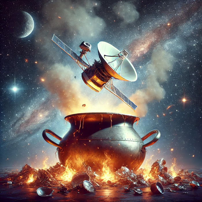 Это небесный гость свалился с неба, пробив крышку котла заседаний, и удачно выпустив пар во время жарких дебатов проходившего там ученого совета. Внимательно изучив упавший метеорит, ученые пришли к выводу, что он искуственного происхождения и прибыл к ним с той самой 3-й планеты соседней звезды. А рассмотрев примитивные изображения голых обитателей, молекулы воды и координаты самой планеты, умные центаврианские мужи решили, что время вторжения настало, ибо люди вышли в космос, а это грозило неприятностями самим обитателям планеты Альфа Центавра.