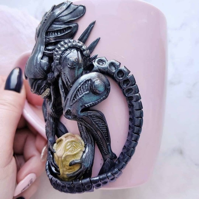 Кстати,на эту работу ушло около 6 часов! И это только лепка, впереди шлифовка кружки и изделия и приклеивание)