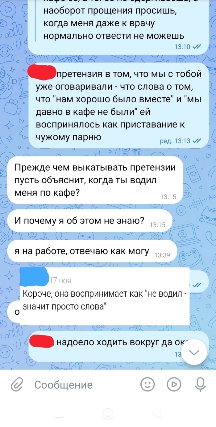 В воскресенье утром я отправила смс маме малыша, и сегодня утром она ответила, что прощает меня и надеется, что я восприму это как полезный опыт, но они не примут меня обратно на работу. Я так по ней скучаю, она сказала, что обо всем поговорила со своим мужем, и они решили выплатить мне месячную зарплату, пока я не найду новую работу, я, честно говоря, не ожидала этого, это было очень любезно с их стороны, даже после всего, что случилось. Я так скучаю по своей семье единорогов, я была совершенно не права, и я беру на себя всю ответственность за это, я знаю, что причинила боль людям, которые мне доверяли, и это то, с чем я должна жить и чему должна научиться, я не буду подавать никаких заявлений о сексуальных домогательствах, люди, которые советовали мне это сделать, не давали мне хороших советов, и с этого момента я буду держаться от них на расстоянии, я так сильно скучаю по ребенку. Я не могу поверить, что больше не вернусь, это разбивает мне сердце, потому что они были такой важной частью моей жизни, я продолжаю прокручивать все в голове и задаюсь вопросом, могу ли я что-нибудь сказать или сделать, чтобы все исправить, я знаю, что доверие, однажды разрушенное, трудно восстановить., но я хотела бы показать им, как сильно я выросла и как искренне сожалею.