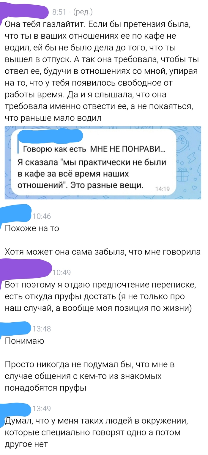 К - Вы обоснованно чувствуете разочарование из-за того, что облажались, но вы должны понимать, что это была ваша вина, и отвечать за последствия только вам.