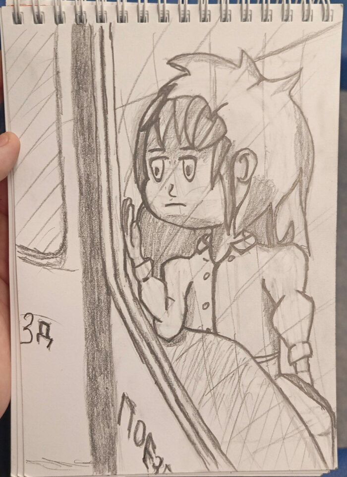 Всем жителям хижины общий привет, ну как вы там? Что нового у кого? Я вот домой еду наконец, который находится за 230 километров от моего места учебы, каеф. А этот недоарт я нарисовал пока еду, осталось ещё часа полтора потерпеть и моя душа будет успокоена дома. Я ещё с собой взял графический планшет, но не могу переходник найти, чтоб на телефоне порисовать что-нибудь, поэтому пришлось на скетчбуке.