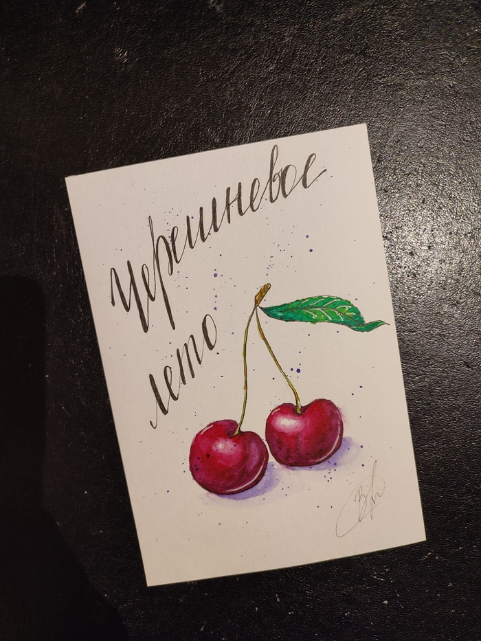 Так мне захотелось посмотреть на сколько вырос мой навык. Прошлым летом я рисовала скетч "Черешневое лето" (фото 2), поэтому для большей наглядности я решила снова нарисовать черешню (фото 1).